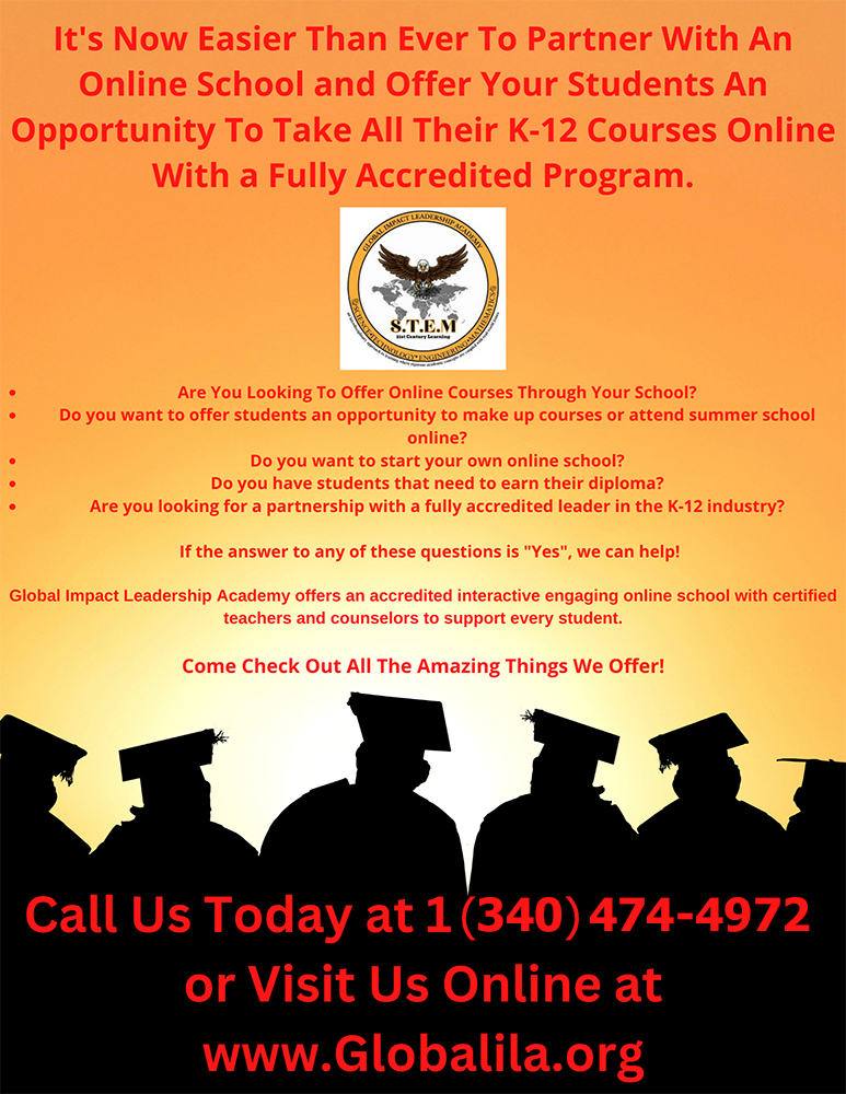 The Global Impact K-12 Leadership Academy is a leading provider of home school, distance education, and online middle school and high school courses. The Global Impact K-12 Leadership Academy offers a fully accredited online experience through our educational partner American K12 School, accredited with SACS CASI and Advanc-Ed. The Global Impact K-12 Leadership Academy offers an affordable, quality, self-paced online education. Once enrolled in our program, your child will be assigned a counselor that will assist them and guide them through the online school process. Your child will also have certified teachers to assist them with their work. At the Global Impact K-12 Leadership Academy, your children are our priority. You will see that from your very first communication with us.